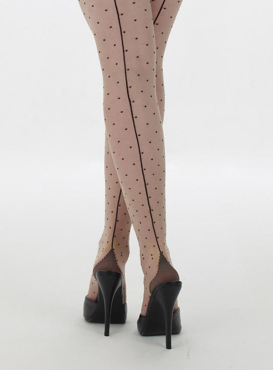 【WHAT KATIE DID】コントラストバックシーム*ドットタイツ