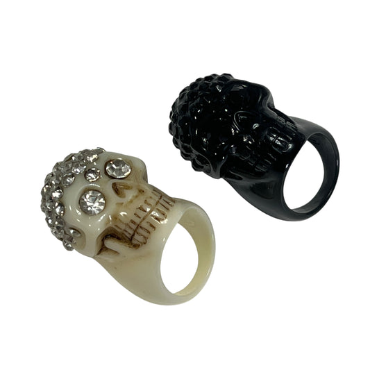 【KREEPSVILLE666】ラインストーン スカルリング 同サイズ白黒セット