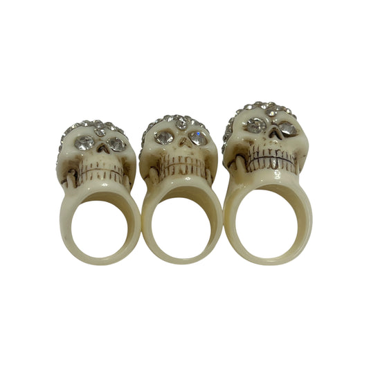 【KREEPSVILLE666】ラインストーン スカルリング 3サイズセット ホワイト