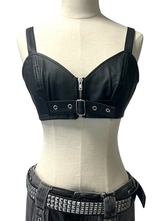 【TRIPP NYC】クロップド丈ホルタートップ*FAUX LEATHER BUCKLE CROP HALTER(VX4188)