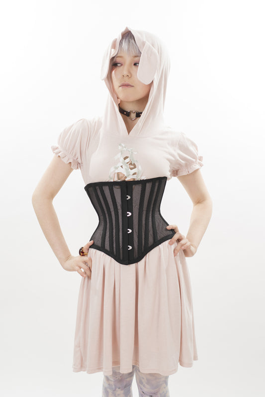 生地は裏地なしのメッシュ1面だけですが、他のコルセットに負けず劣らずしっかりしていると思います。