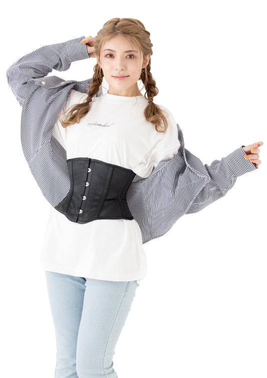 【RESTYLE】ブラックコットン 砂時計型アンダーバストコルセット-ワイドヒップ-20inch