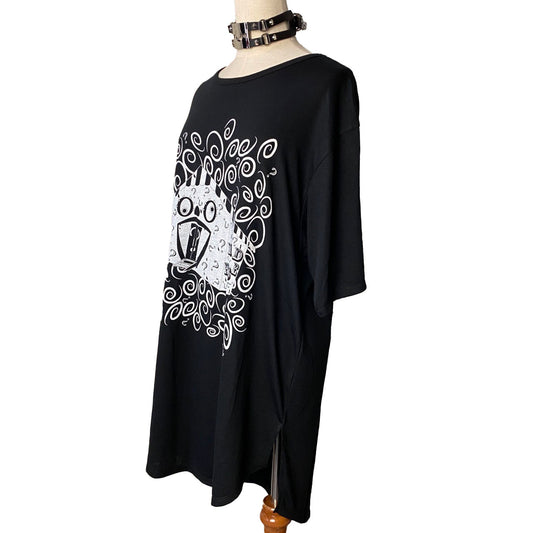 RED SKULLS/BLACK SPIDER WEB LACE STRIP DRESS