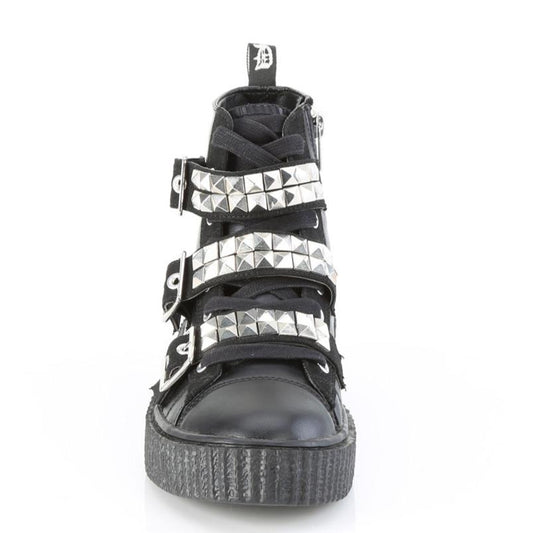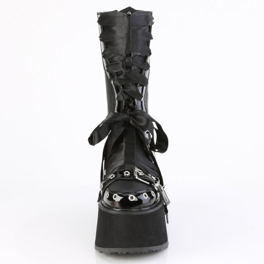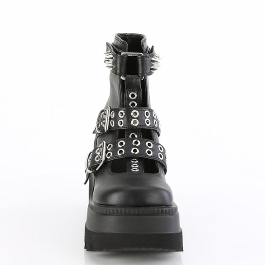 【DEMONIA】3段メタルバックル厚底アンクルブーツ-US7(23.5-24cm)