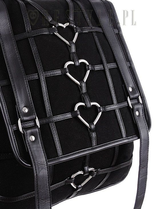 ハートはバッグの前面、サイドポケット、そして腕のストラップ全体に施されています。