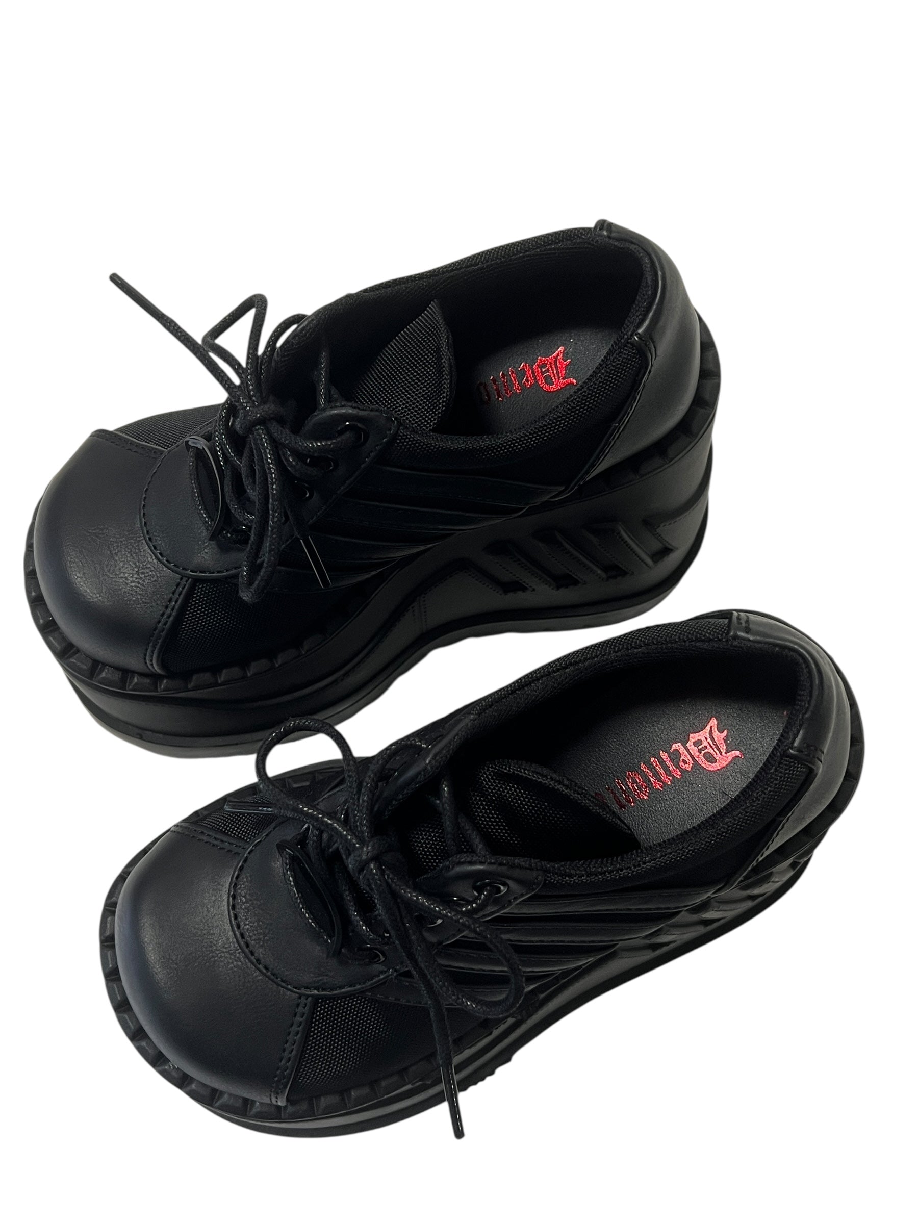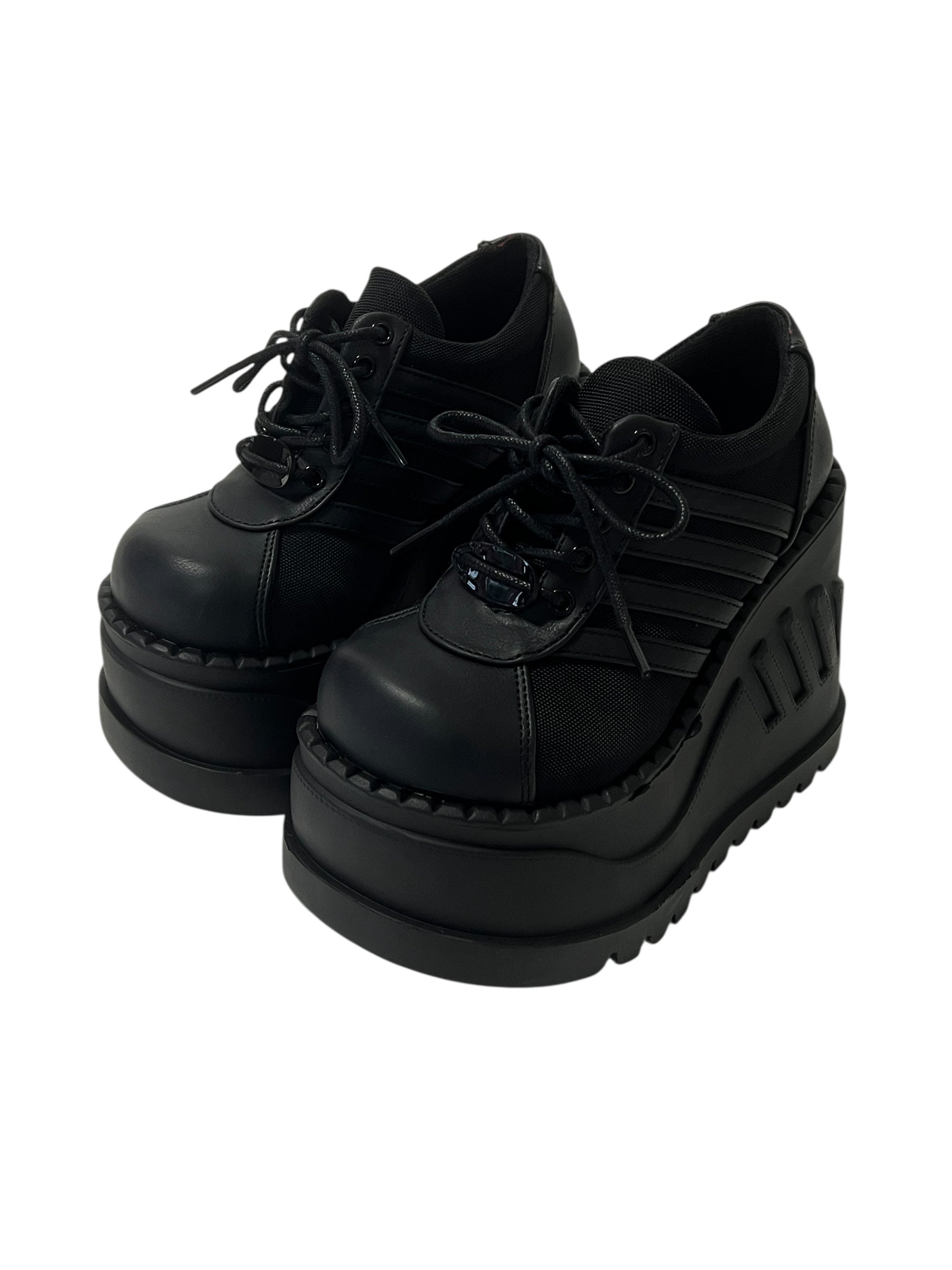 【DEMONIA】ウェッジソール厚底スニーカー(ブラック) ✴︎STOMP-08/B/PU