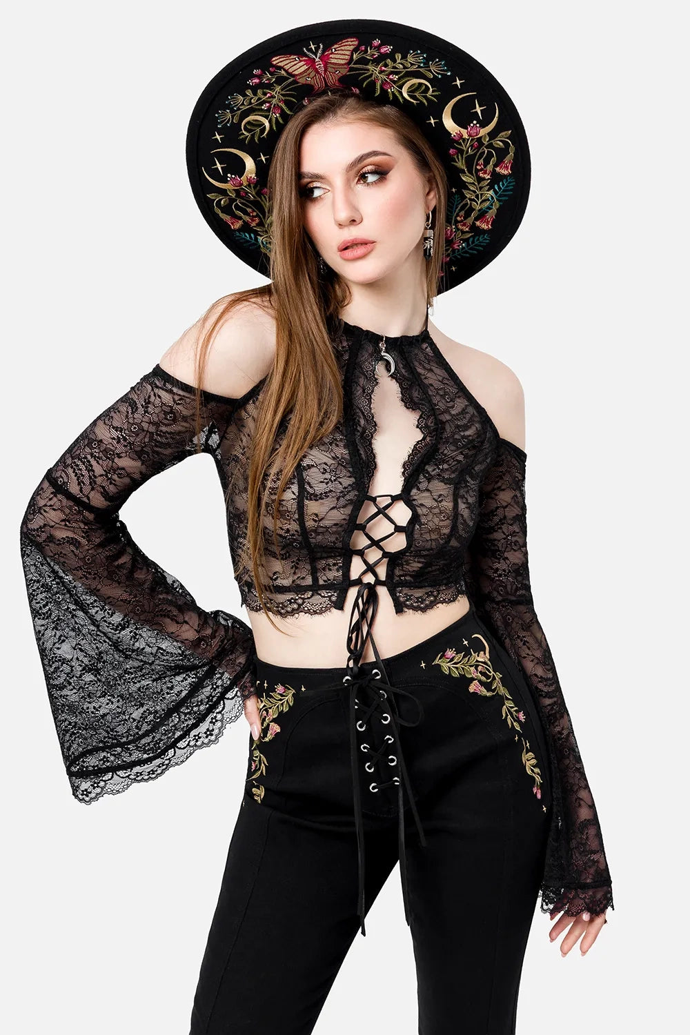 「BOTANICA ベルボトムジーンズ」は、レトロなフレアラインにウィッチィな魔術のエッセンスを宿した一本。