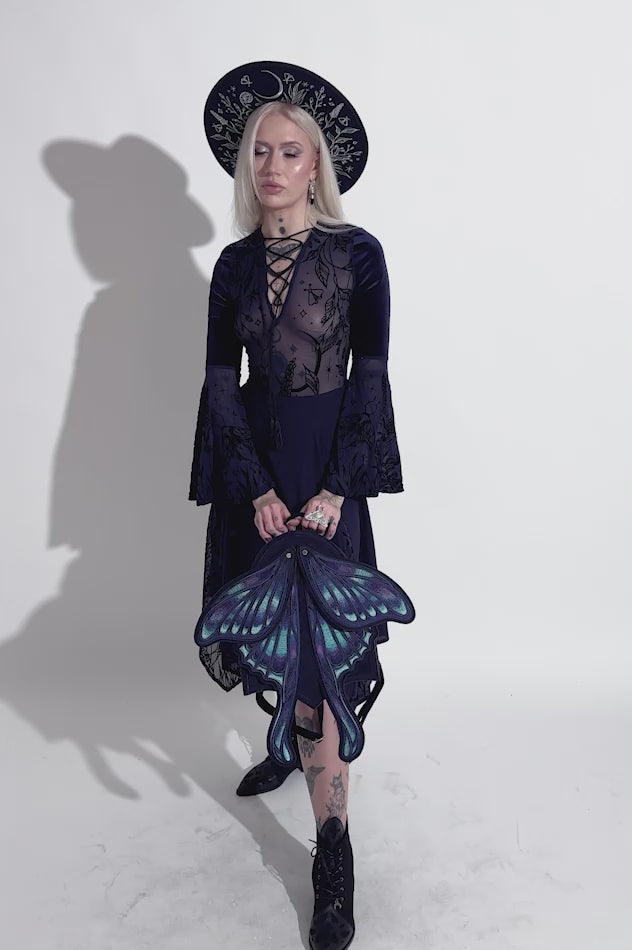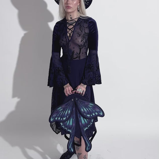 神秘的でウィムジゴス(Whimsigoth)な魅力を、どんなスタイルにも添えてくれるブルーモスバックパックです。